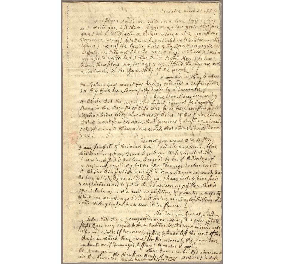 Abigail’s Letter to John (Massachusetts Historical Society, 1776)